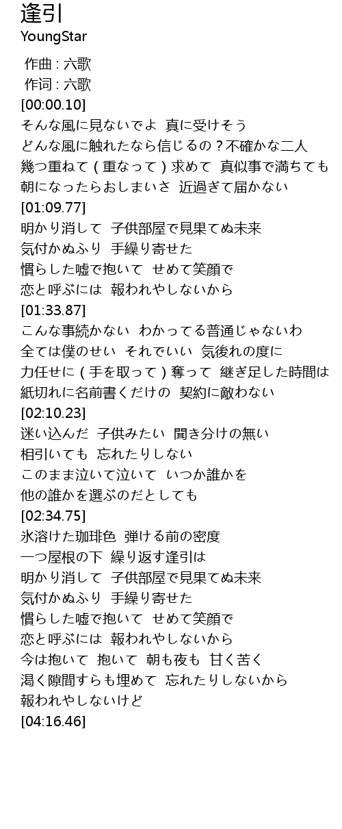 | [03:24.07] | 一つ屋根の下 繰り返す逢引は |