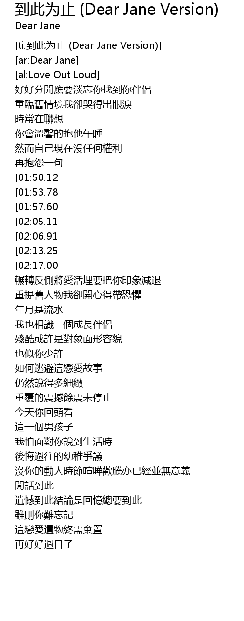 | [00:15.11] | 好好分開應要淡忘你找到你伴侶 |