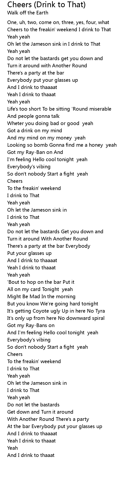 And I drink to thaaaat |