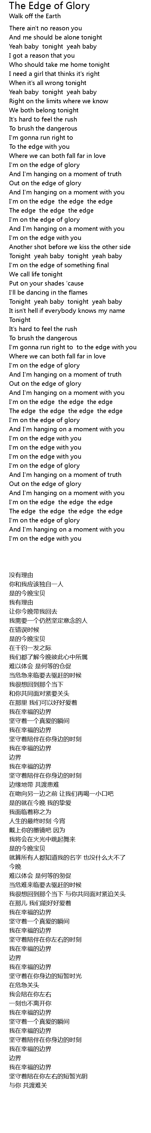 I'm on the edge of glory |