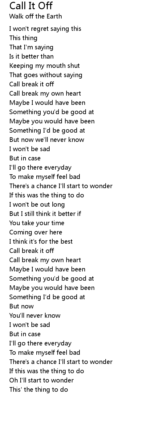 Call break it off |
