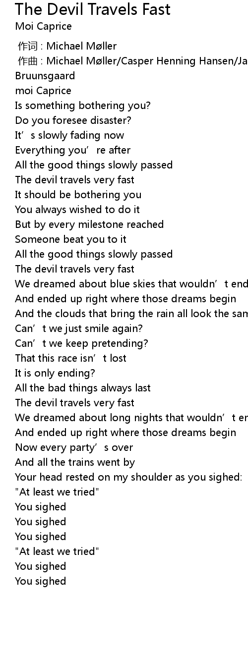| [00:00.281] | 作曲 : Michael Møller/Casper Henning Hansen/Jakob Millung/David Bruunsgaard |