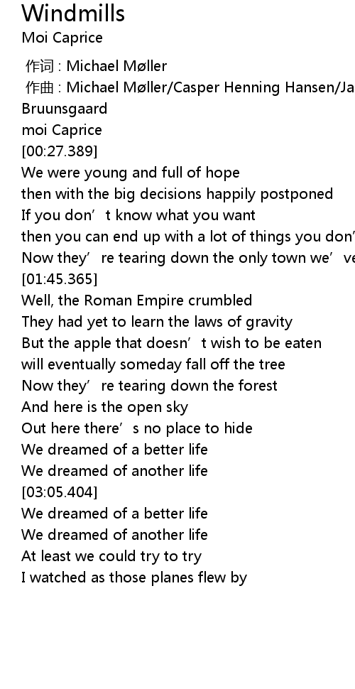 | [00:01.000] | zuò qǔ : Michael M ller Casper Henning Hansen Jakob Millung David Bruunsgaard |