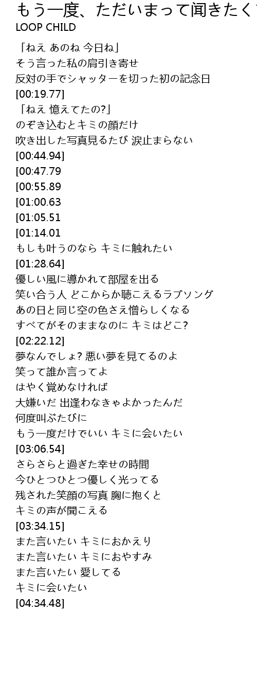 | [02:56.22] | もう一度だけでいい キミに会いたい |