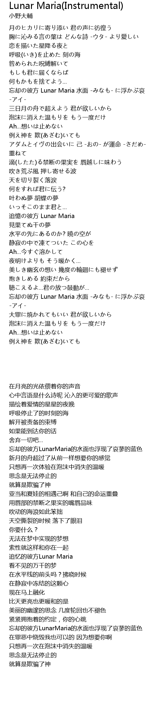 | [03:30.72] | wang que bi fang Lunar Maria shui mian fu ai |