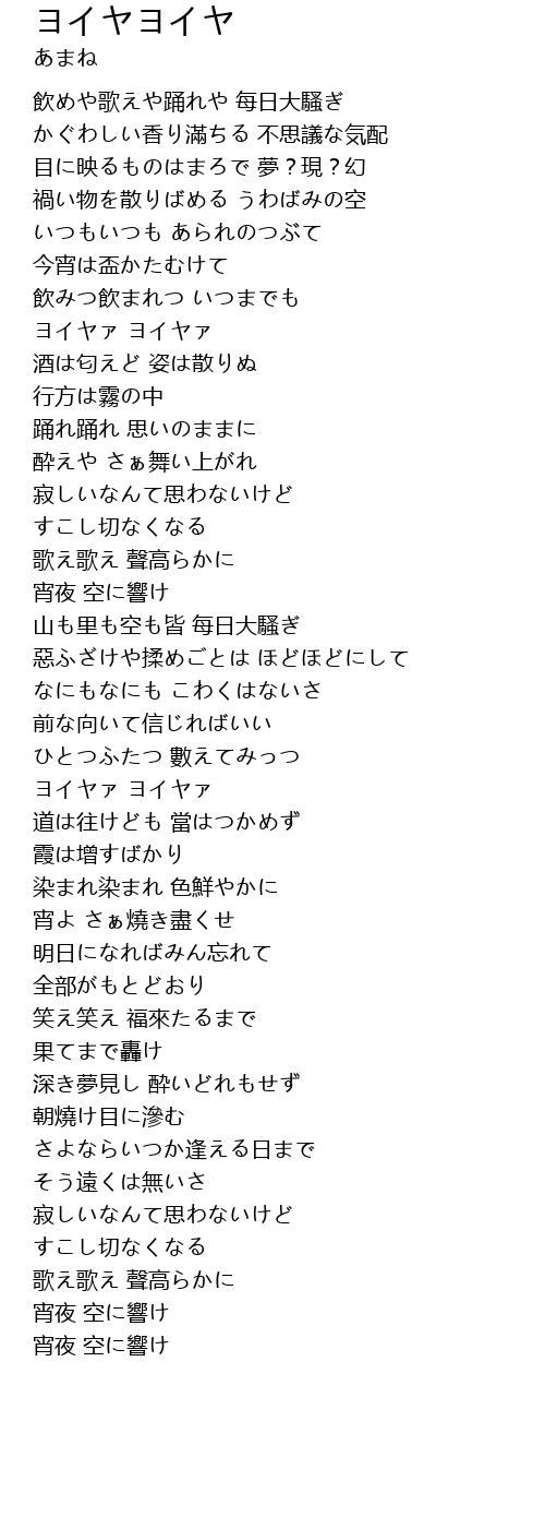 | [00:53.41] | ヨイヤァ ヨイヤァ |