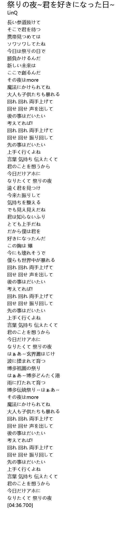 | [01:08.160] | 回れ 回れ 両手上げて |