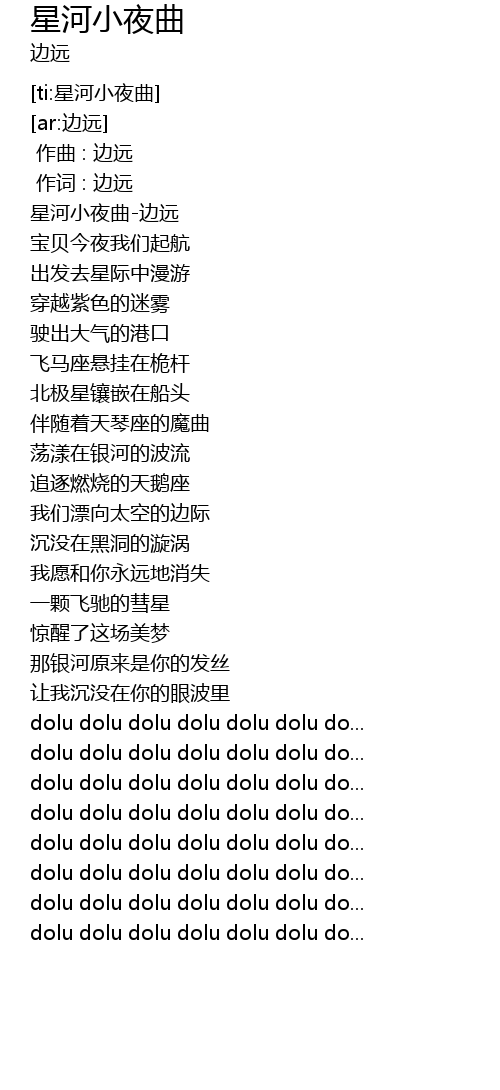 | [00:02.76] | xīng hé xiǎo yè qǔ biān yuǎn |