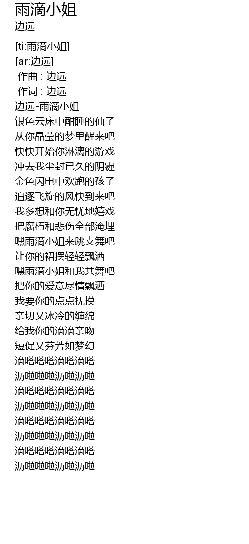 | [02:10.752] | 嘿雨滴小姐来跳支舞吧 |