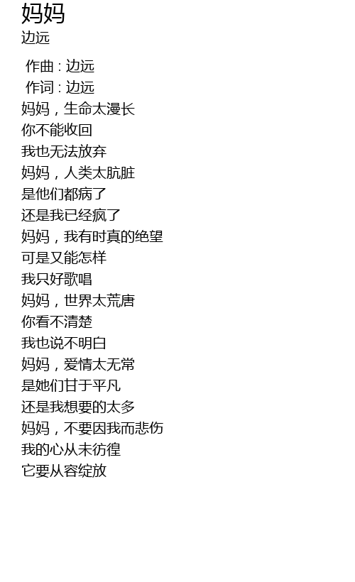 | [00:56.41] | 妈妈,我有时真的绝望 |