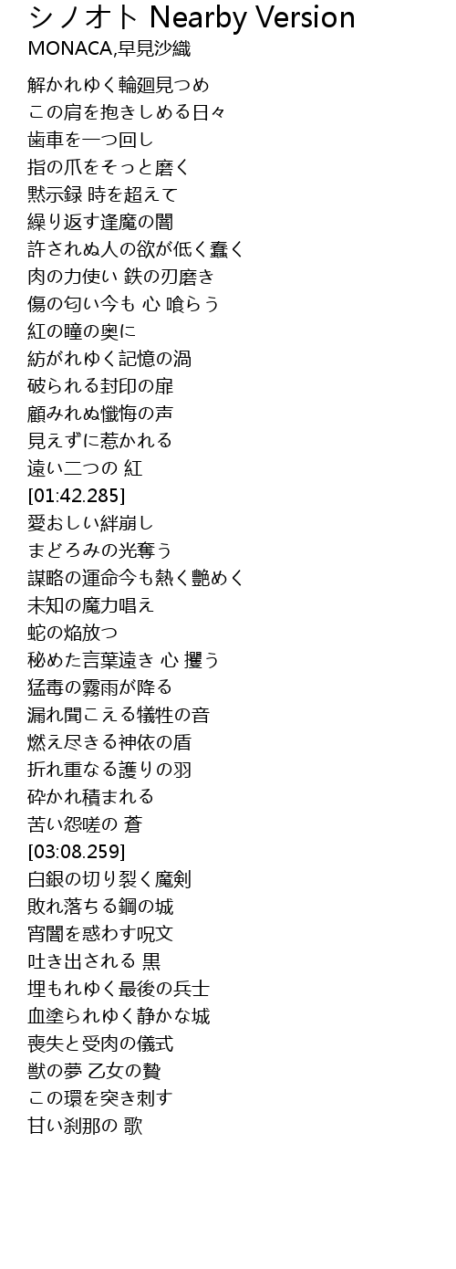 | [02:41.360] | 燃え尽きる神依の盾 |