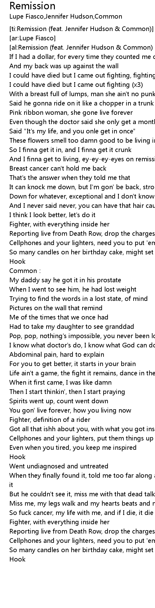 | [ti:Remission (feat. Jennifer Hudson & Common)] | |