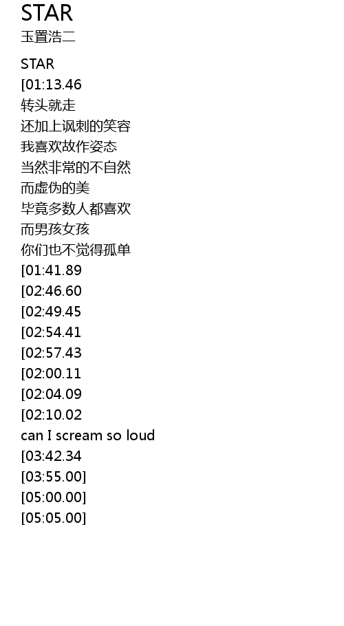 | [00:26.00][01:13.46][02:17.40] | 1976-STAR |