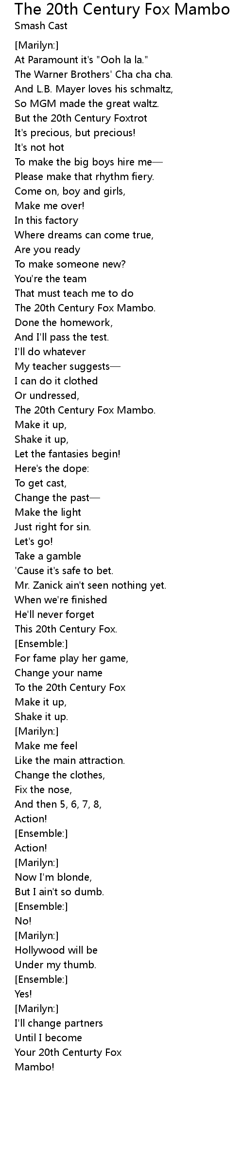 | Song | The 20th Century Fox Mambo |