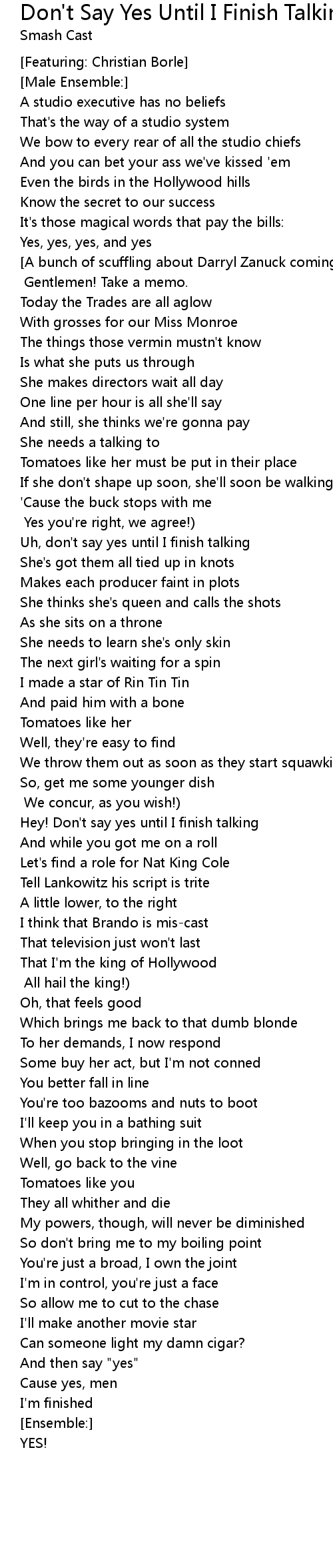 Hey! Don't say yes until I finish talking |