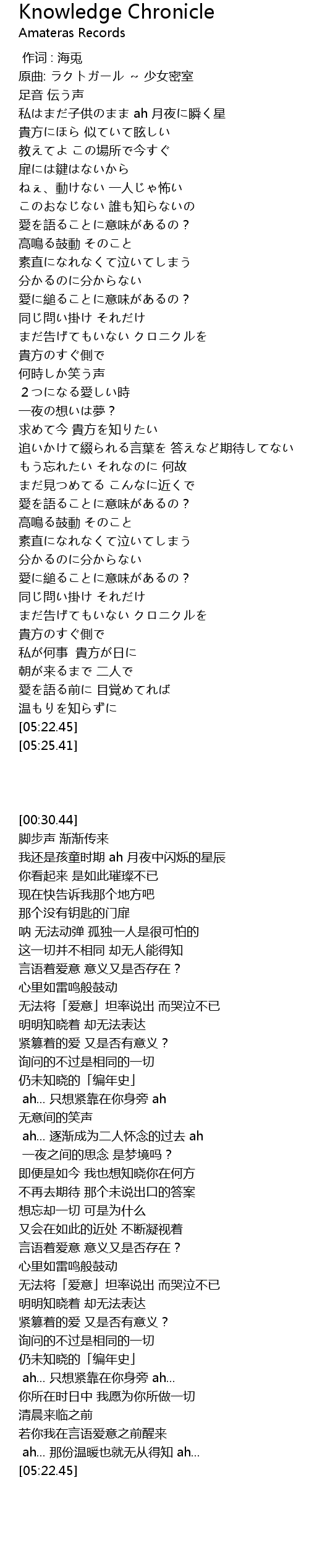 | [00:30.44] | 原曲: ラクトガール ~ 少女密室 |