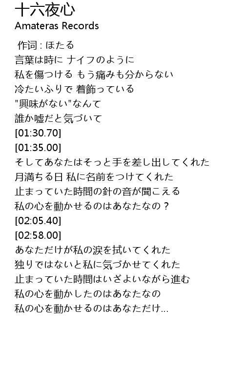 | [01:44.55] | 月満ちる日 私に名前をつけてくれた |