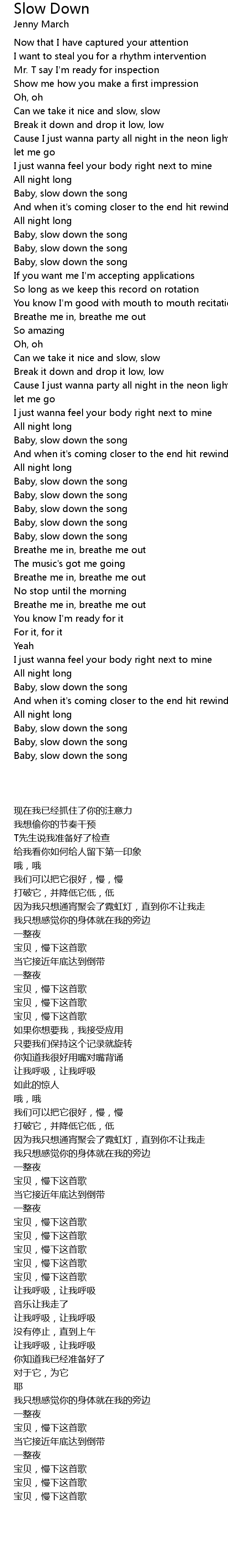 [02:51.460] Baby, slow down the song