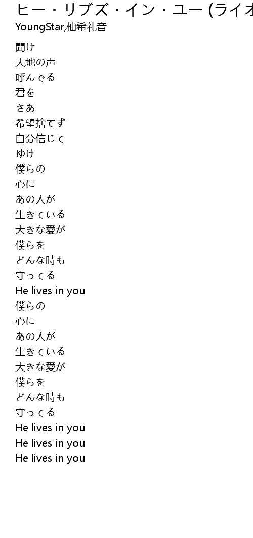 | [02:56.18] | He lives in you |
