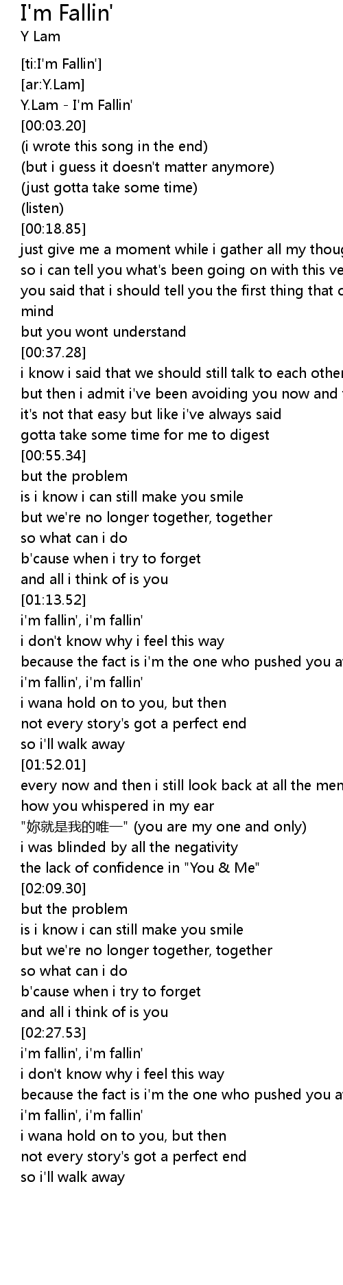 | [00:00.00] | Y. Lam I' m Fallin' |