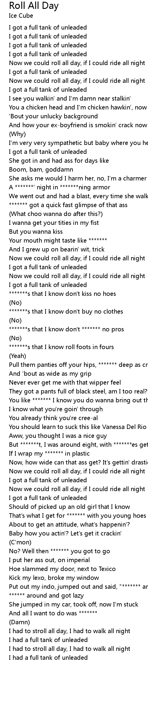 I got a full tank of unleaded |
