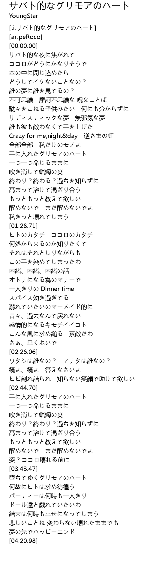 | [03:50.72] | 堕ちてゆくグリモアのハート |