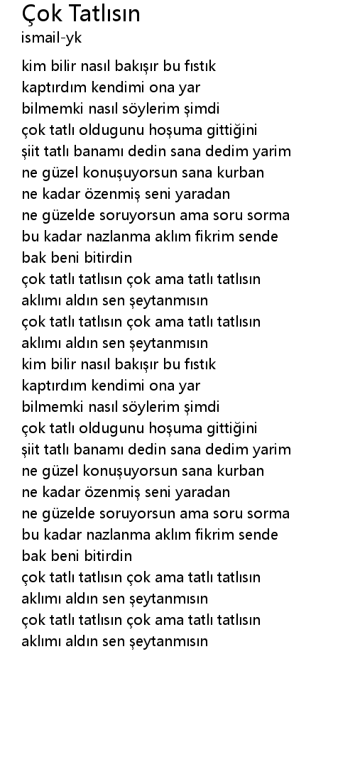 | çok tatlı tatlısın çok ama tatlı tatlısın | |