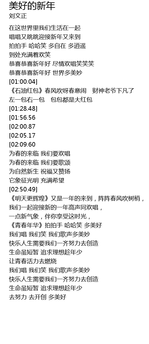 | [00:50.87] | 恭喜恭喜新年好 世界多美妙 |