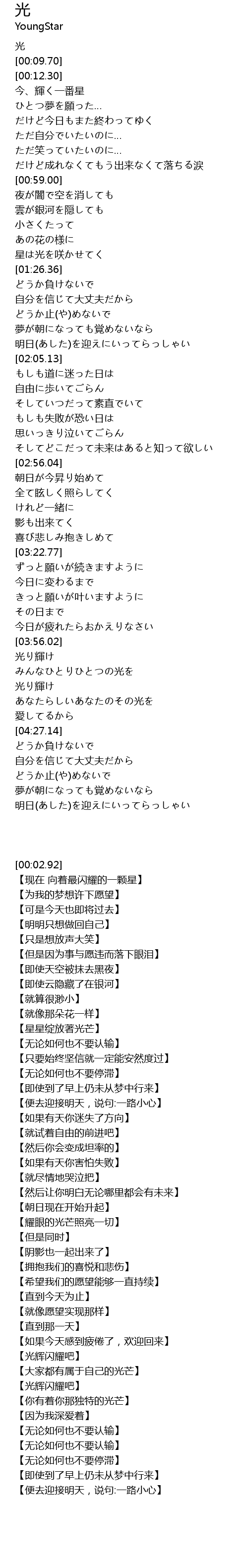 | [04:10.31] | 光り輝け |