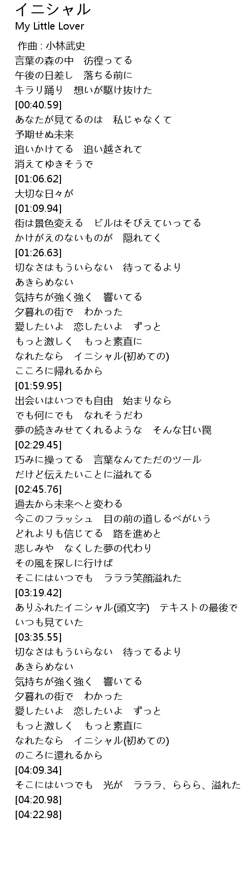 | [03:22.66] | ありふれたイニシャル(頭文字) テキストの最後で |