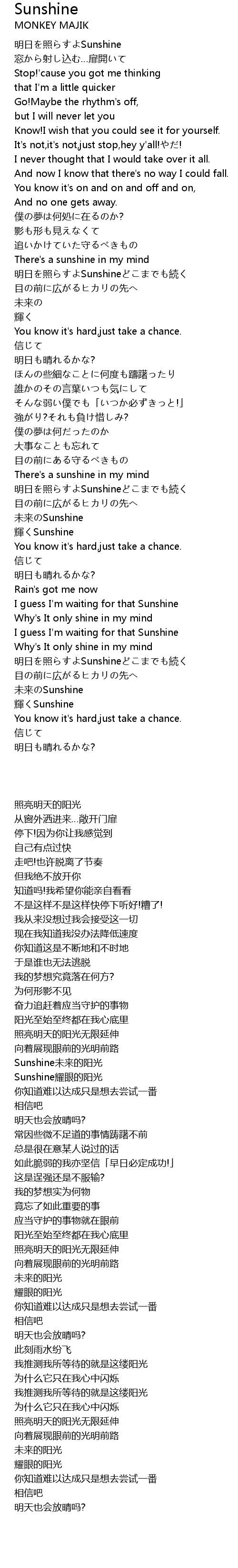 | [03:05.650] | I guess I' m waiting for that Sunshine |