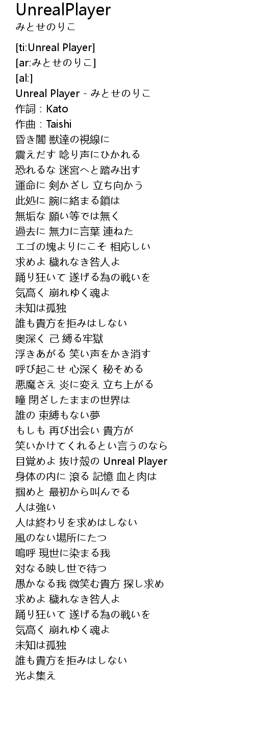 | [00:00.00] | Unreal Player - みとせのりこ |