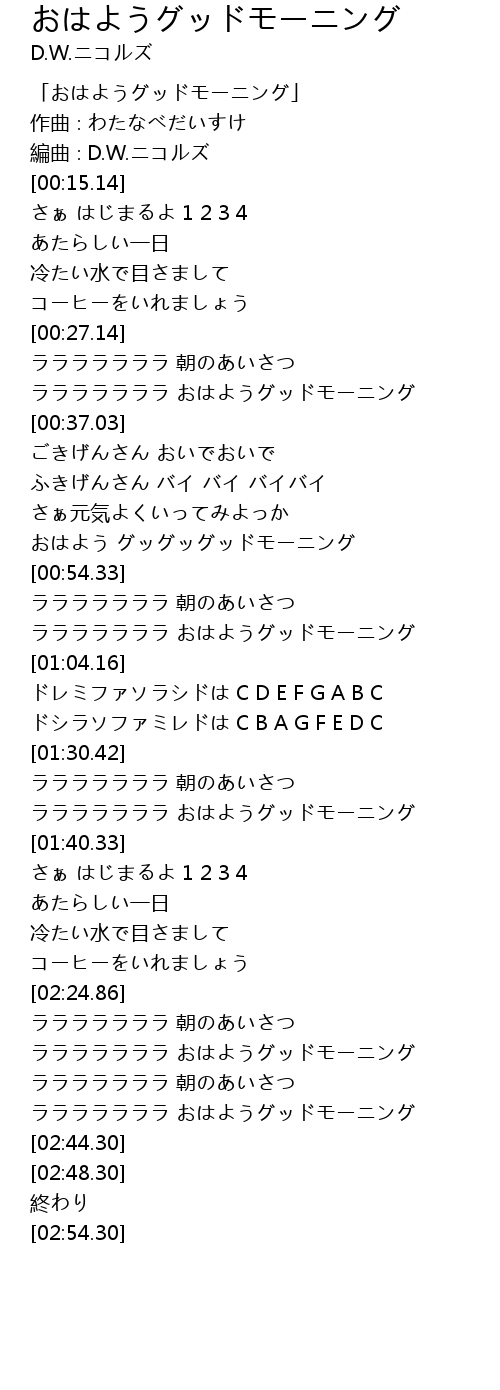 | [00:59.45] | ラララララララ おはようグッドモーニング |