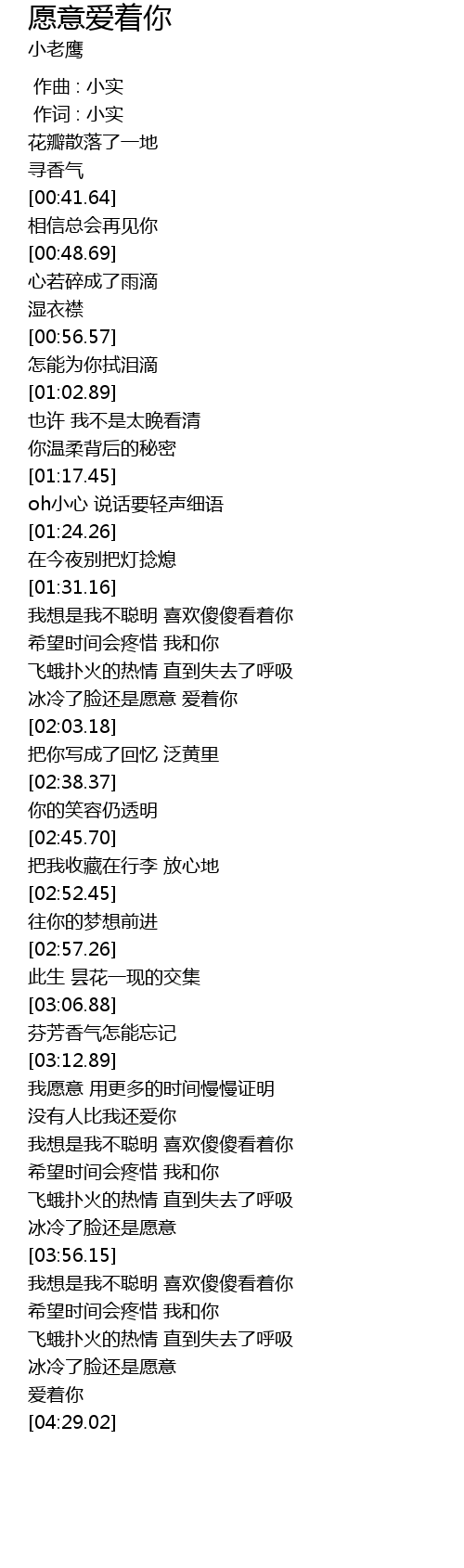 | [00:01.00] | 作词 : 小实 |