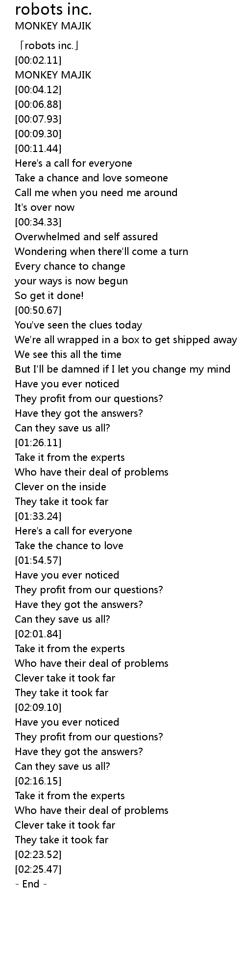 | [00:00.93] | 「robots inc.」 |
