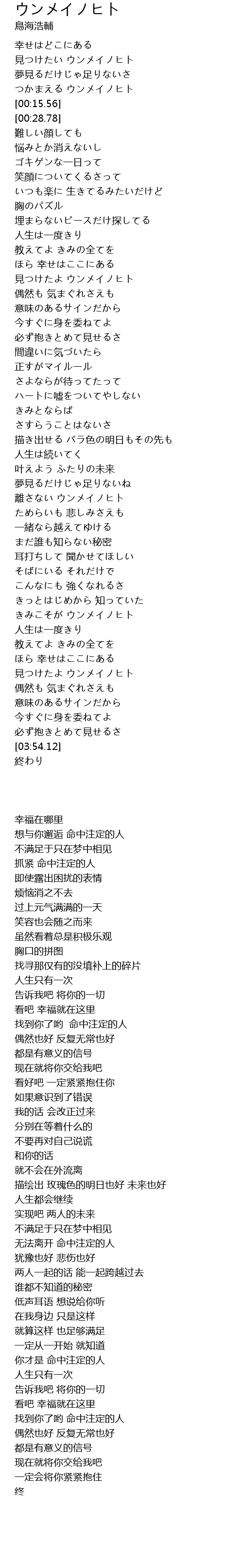 | [03:34.13] | 見つけたよ ウンメイノヒト |