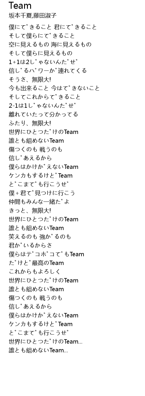 | [02:35.826] | 世界にひとつだけのTeam |