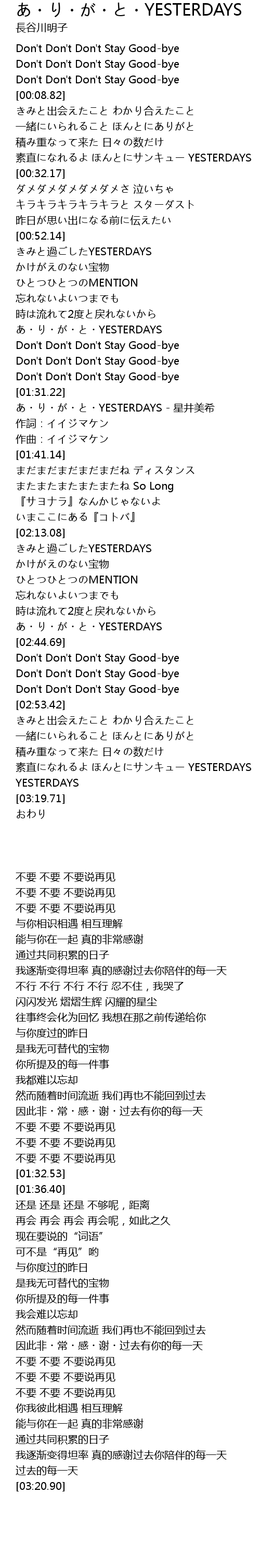 | [02:43.19] | あ・り・が・と・YESTERDAYS |