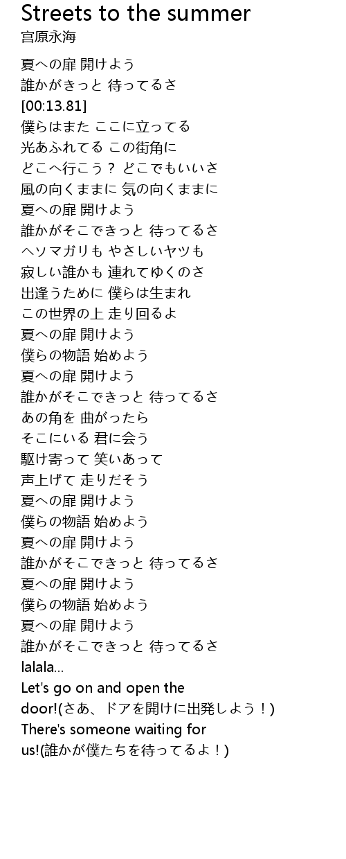 | [02:42.78] | Let's go on and open the door!(さあ、ドアを開けに出発しよう!) |