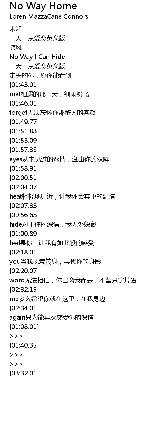 | [00:25.29][01:53.09] | Something I`ve not seen before我从未见过的深情 |
