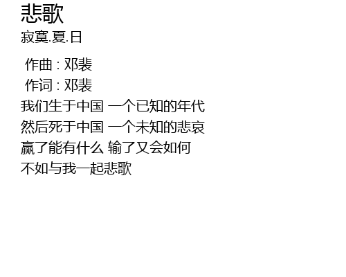 | [00:22.000] | 然后死于中国 一个未知的悲哀 |