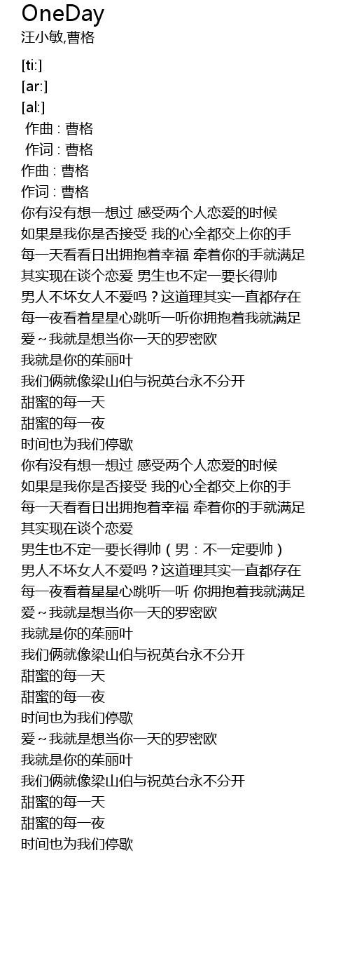 | [00:00.00] | 作曲 : 曹格 |