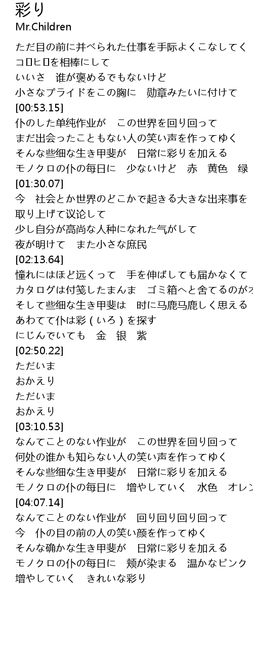 | [02:40.57] | あわてて仆は彩(いろ)を探す |