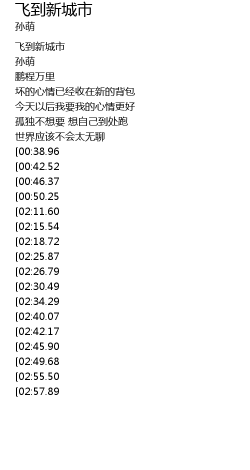 | [03:28.29][02:26.79][01:09.85] | 飞到新的城市 |
