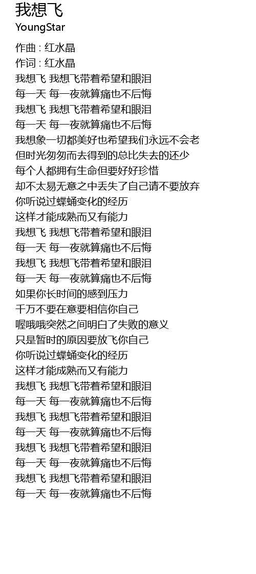 | wǒ xiǎng fēi wǒ xiǎng fēi dài zhe xī wàng hé yǎn lèi | |