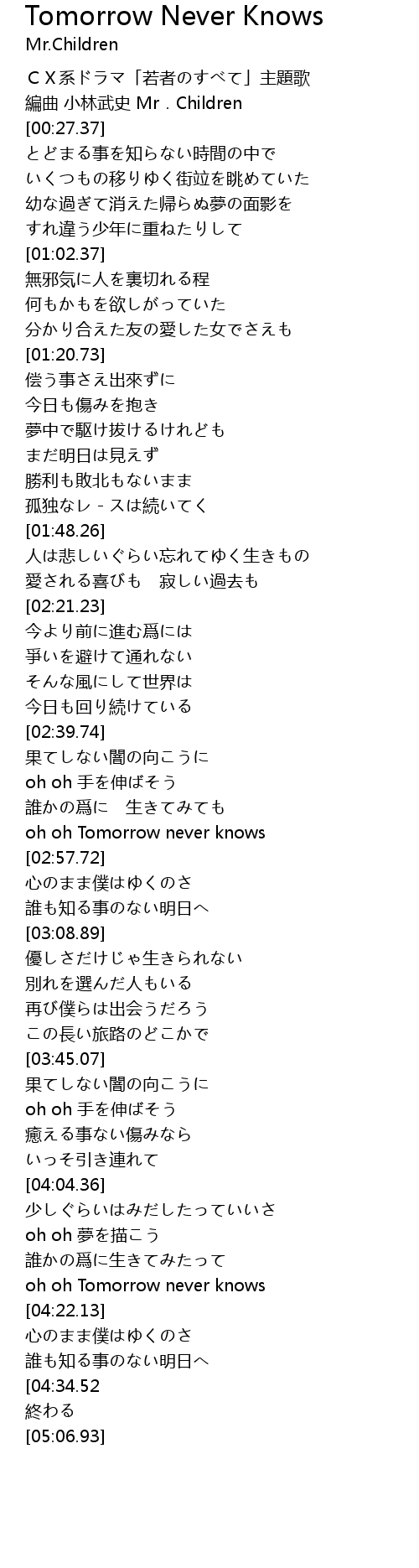 | [02:53.33] | oh oh Tomorrow never knows |