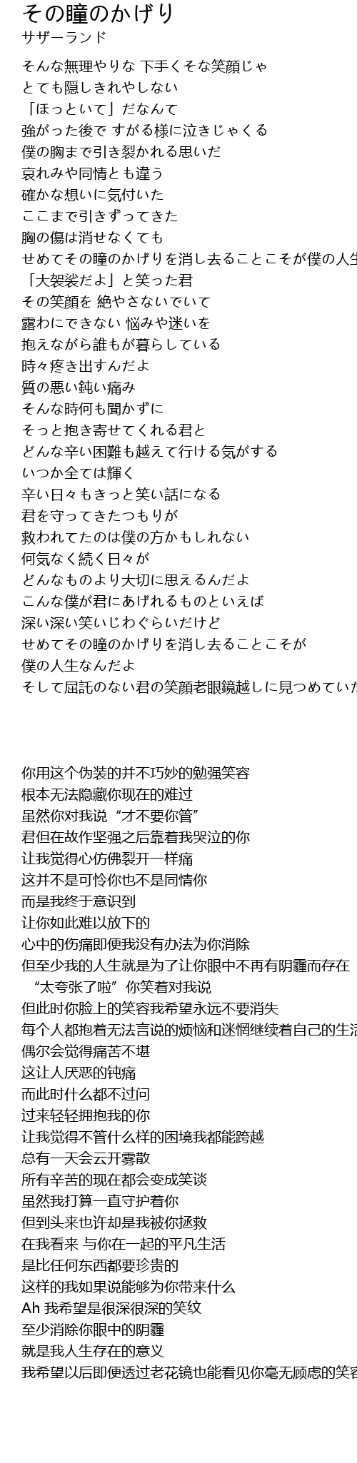 | [01:31.71] | せめてその瞳のかげりを消し去ることこそが僕の人生なんだと |