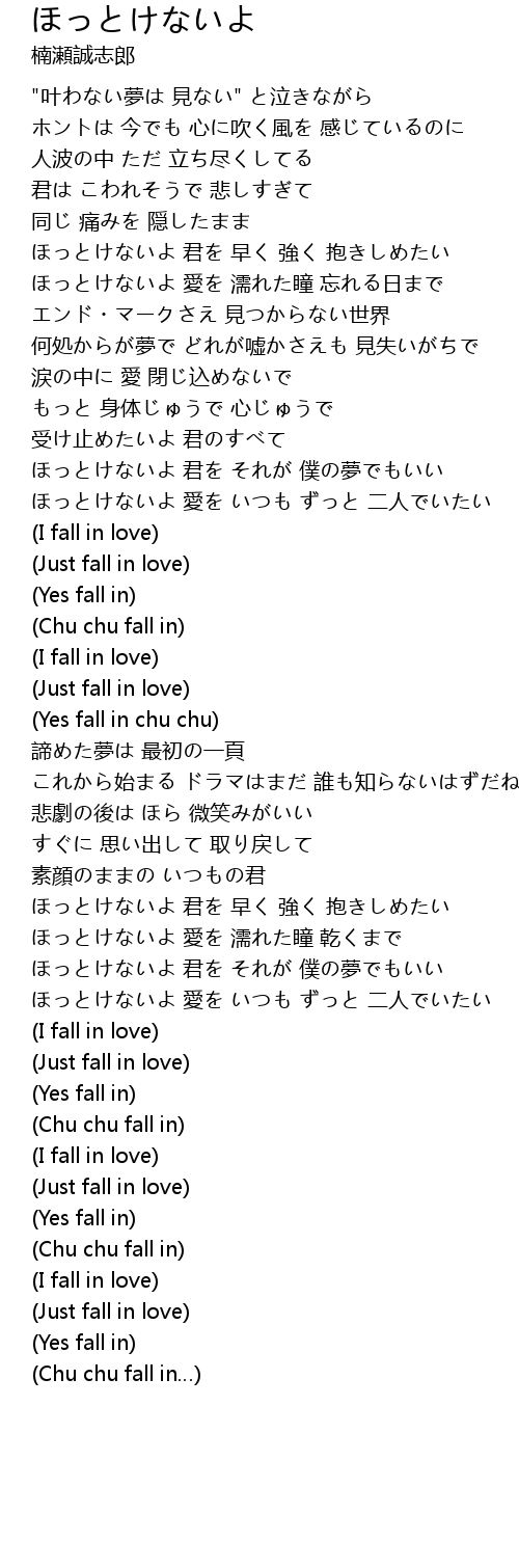 | ほっとけないよ 愛を いつも ずっと 二人でいたい | |