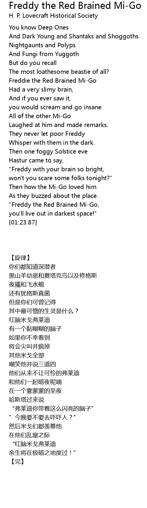 [01:10.15] "Freddy the Red Brained Mi-Go,