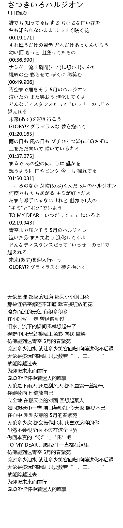 | [02:34.408] | 青空まで届きそう 5月のハルジオン |